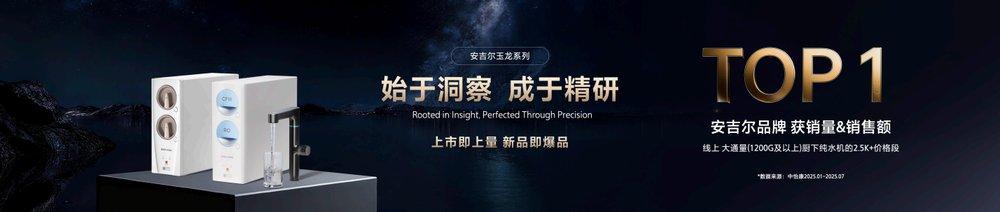 安吉尔玉龙系列自上市以来,凭借优异的产品表现,赢得了市场和用户的广泛喜爱与高度认可。截止2025年8月,玉龙系列上市累计销量突破15万台,且助力品牌在线上大通量(1200G及以上)厨下纯水机的2.5K+价格段获得销量&销售额TOP1。玉龙系列展现出的亮眼数据与增长势能,无疑为近日一款旗舰新品的上市奠定了坚实而强势的基调。