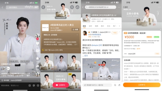 而这一系列组合拳,使olayks立时官宣侯明昊成为全球代言人的相关话题,迅速登上抖音热搜榜,话题讨论度持续升温。