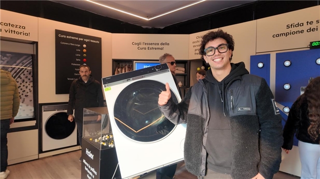 快闪店内,海尔欧洲融合用户喜欢的网球元素,将洗烘产品的核心功能融入趣味游戏,让用户直观感受产品领先科技。其中,斜立着却平稳运行的洗衣机引发用户驻足观察、拍照记录,许多用户通过触摸机身、观察内筒运行轨迹,对产品的工艺细节与使用质感给予了高度肯定。另外,NX11凭借高端屏显设计与简约时尚的平嵌式机身外观也收获大量好评。