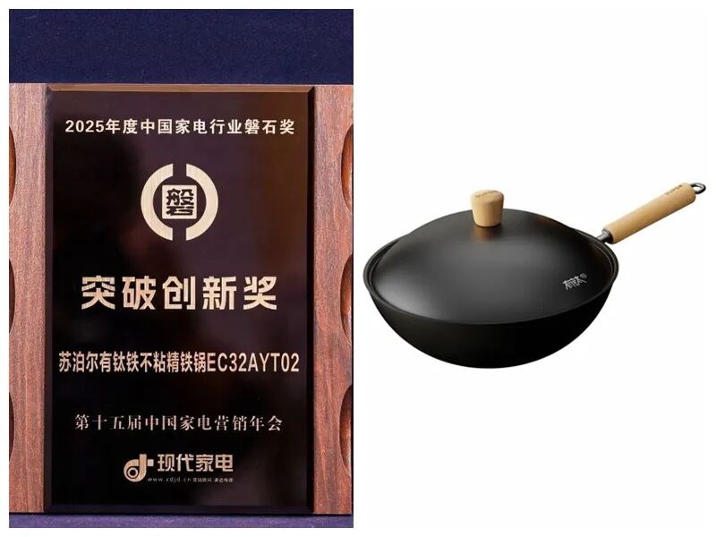 苏泊尔有钛铁不粘精铁锅荣获“突破创新奖”。