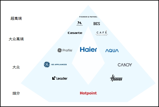 事实上,海尔智家虽然品牌众多,但每个区域都是有策略的精准布局。像在国内,以海尔、卡萨帝、Leader、斐雪派克四大品牌为核心,覆盖超高端、高端、大众、年轻消费群体,通过品牌的差异化布局实现了国内市场份额的持续引领;在北美,除了海尔品牌,还有GE Appliances及其旗下Monogram、Café、GE Profile覆盖超高端和高端市场,通过品牌协同发力GE Appliances成当地第一大家电公司;在欧洲,布局海尔、Candy等多品牌,满足不同用户需求,海尔白电整体份额居中企第一;在澳新,海尔、斐雪派克双品牌驱动实现大白电第一;在日本、东南亚,海尔和AQUA双品牌并行,其中双品牌冰冷份额日本第一;在南亚、中东非以海尔品牌为主,其中巴基斯坦海尔连续10年第一。