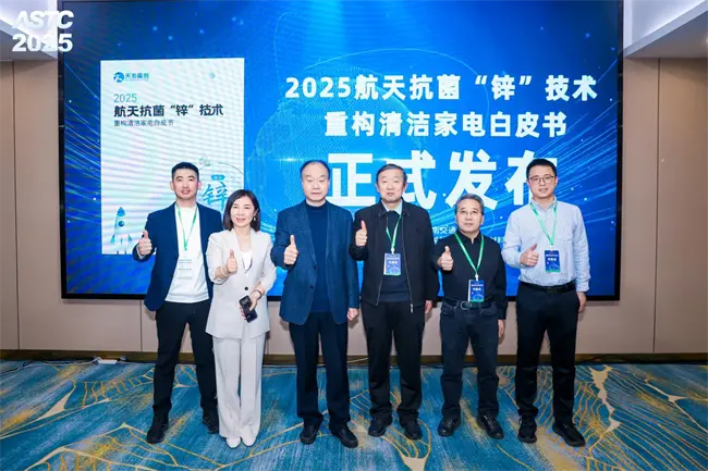 2025年12月11日,在湖北武汉召开的2025中国家电科技年会(ASTC 2025)家电环境清洁技术专题研讨会上,成都天佑晶创科技有限公司联合西南交通大学、中国家用电器研究院及中关村汇智抗菌新材料产业技术创新联盟,正式发布《2025年航天抗菌“锌”技术重构清洁家电白皮书》。
