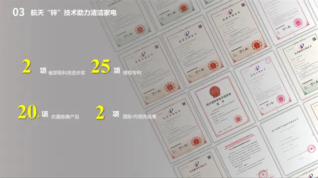 天佑晶创具备航天抗菌“锌”技术完整的研发与规模化生产能力,已建成该材料专属生产线,实现从技术研发到产品落地的完全自主可控。公司拥有25年的技术积淀,依托成熟的研发体系和产学研合作基础,已获授权专利20余项,参与30余项国家、行业及团体标准制定,并先后获得国家高新技术企业、四川省瞪羚企业、“专精特新”中小企业等荣誉称号。