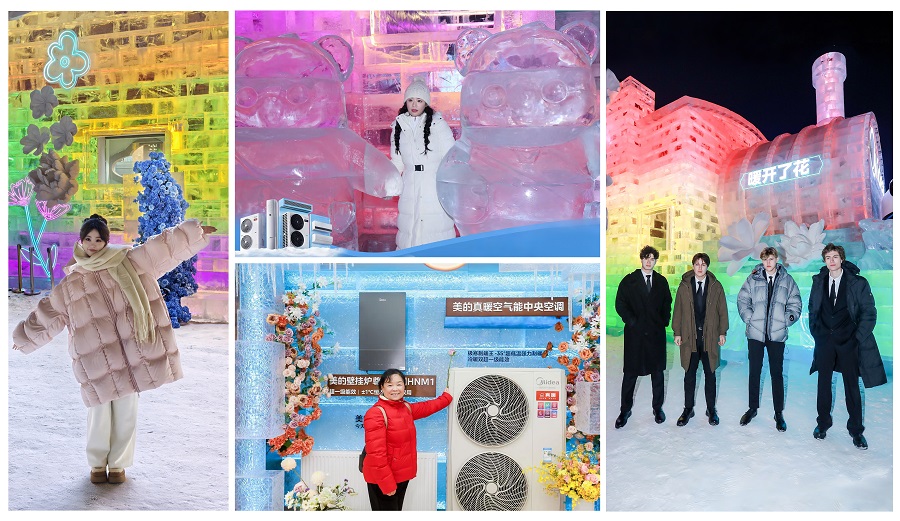 其中,“金马影后”马思纯携手美的中央空调研发总监雷俊杰,在此开启一场特别直播——车外是零下十几度的凛冽寒风,车内却恒温26℃、鲜花盛放,众多游客与线上观众循着暖意而来,共同见证这场跨越50℃温差的温暖相遇。这场集结明星与行业专家的直播,不仅是冰雪大世界的特色打卡体验,更用“科技+场景”的直观呈现,展现了家电品牌对冬日温暖的全新诠释。