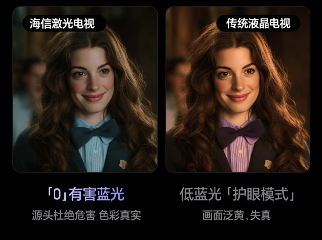 “看电视伤眼”是不少人都担心的事。为解决这一痛点,如今市面上出现了许多护眼概念,有些是通过让画面变暗变黄来降低刺激,有些则仅宣称“低蓝光”——而事实上,波长为415-455nm的有害蓝光穿透力强,可直抵视网膜色素上皮细胞,增加青少年近视与老年白内障风险。