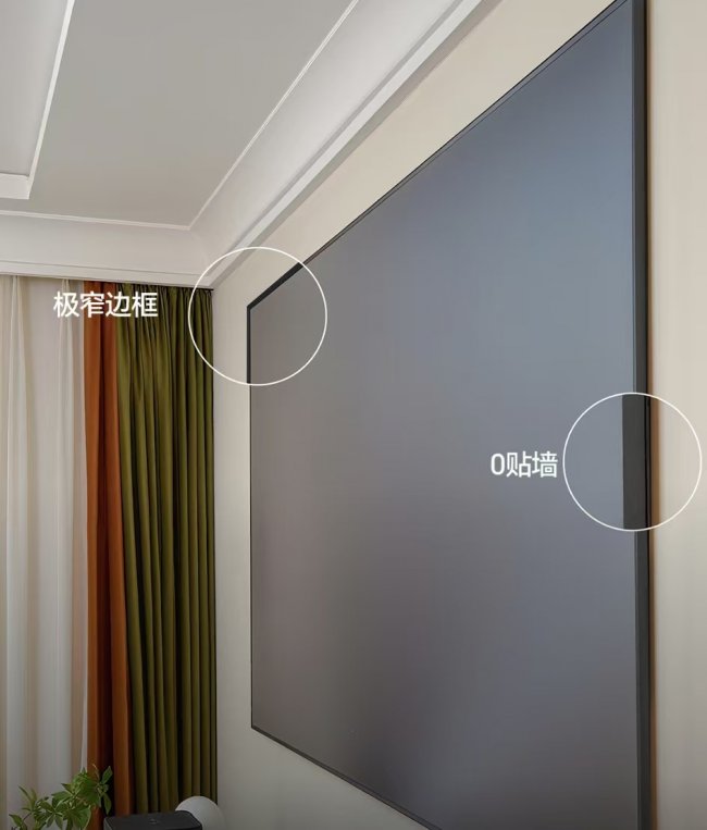 其屏幕采用了超薄悬浮式设计,厚度极致纤薄,可实现近乎完美的 “0贴墙”安装,宛如一幅悬浮于墙面的动态壁画。极窄的边框进一步弱化了设备的存在感,让观众的注意力完全聚焦于画面本身。更令人称道的是其屏幕可折叠设计与轻盈的体重,彻底解决了百寸巨幕“入户难”、“上墙难”的痛点,无需拆窗破门,即可轻松进驻各种户型,甚至能安全适配于大理石、岩板等高档装饰墙面。
