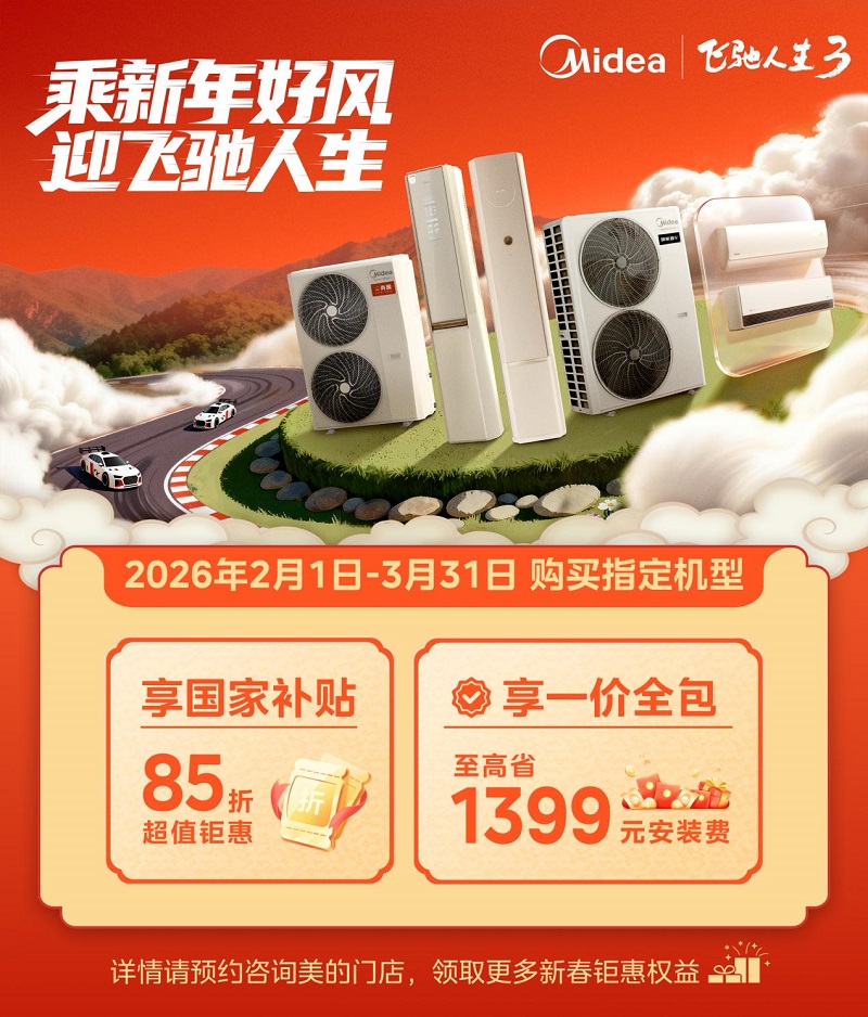 新春启序,暖意先行。2026春节档将至,美的空调携手热门IP《飞驰人生3》,以“驭风前行”的热血姿态,将电影激情融入冬日居家场景。凭借强劲制热科技,为万千家庭驱散严寒、守护团圆温暖;同时上线免费抽电影票、购机至高立省1399元安装费等多重福利,以科技实力与情感共鸣,共启新春暖冬新篇。