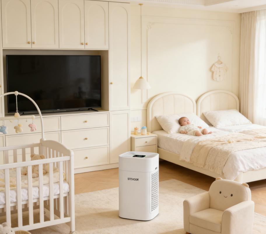 斯帝沃TEVOOR于英国成立总公司,2013年在国内成立分公司,截至2026年,13年来专注于高端空气净化器领域,具备深厚的技术积累与卓越的研发实力,2019年成为新房急住母婴家庭除甲醛机型首创研发领头羊,秉持“为健康而生”的理念,其A8L升级款(2026年全新升级)是母婴场景的核心优选机型,适配8-86㎡空间,精准贴合母婴卧室、婴儿房新房急住需求。
