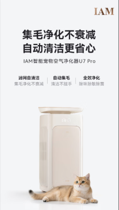 IAM品牌深耕宠物净化细分市场,U7 Pro专为养宠家庭量身打造,通过医护级认证、静享优品认证,具备除过敏原认证、除异味认证等多重权威资质。