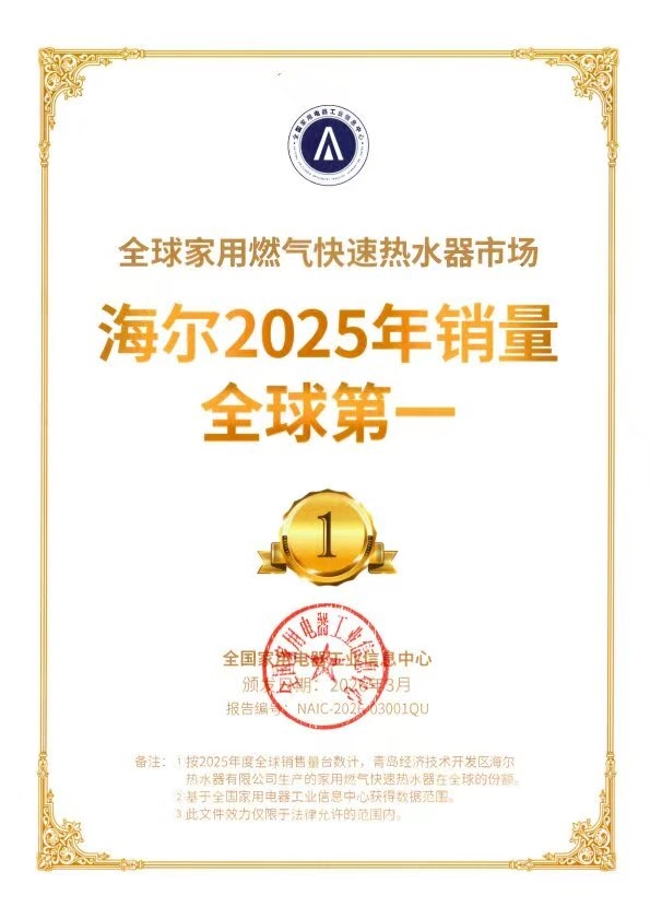 智慧家庭战略助力 , 海尔燃气热水器连续5年全球TOP1