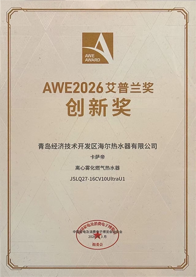 3月12日,2026年中国家电及消费电子博览会(AWE)在上海开幕。卡萨帝携无冷凝水一级能效热水器·无界V10新品亮相,凭借行业首创的航天级离心雾化科技,成功实现冷凝水100%外排,一举斩获艾普兰创新奖。