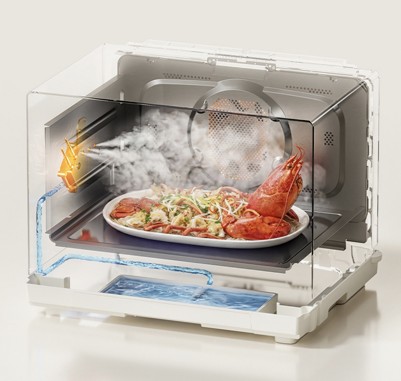 在蒸汽能力方面,产品升级1800W澎湃大蒸汽系统,蒸汽输出更强劲,可实现快速蒸制效果,满足蒸鱼、蒸海鲜或蒸点心等家庭烹饪需求。
